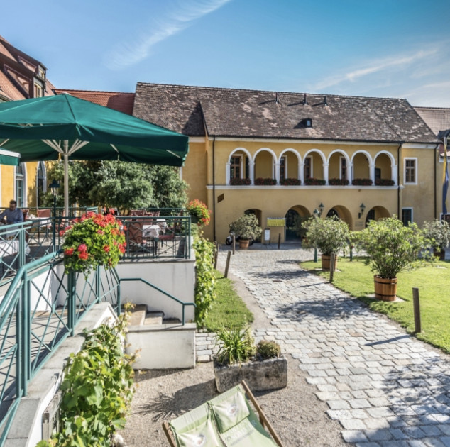Romantische Ecken und Winkel gibt es unzählige im Althof. Einst als Burg Gründungspunkt der Stadt, verschmelzen heute Tradtition und Moderne. Jedes der Zimmer mit eigenem Charme – Gauben, Dachschrägen, massives Mauermerk. Das absolute Highlight ist der Infinity-Pool am Dach des SPA Gebäudes von dem aus man die Weinberge heutnah erlebt samt atemberaubenden Blick.